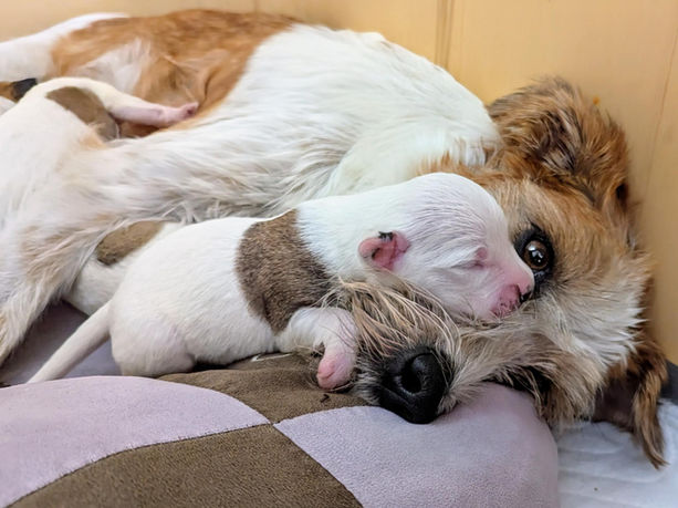 Einige Tage früher als erwartet schenkte Baila bei über 36°C unserem C-Wurf vom Rosenbach das Leben!